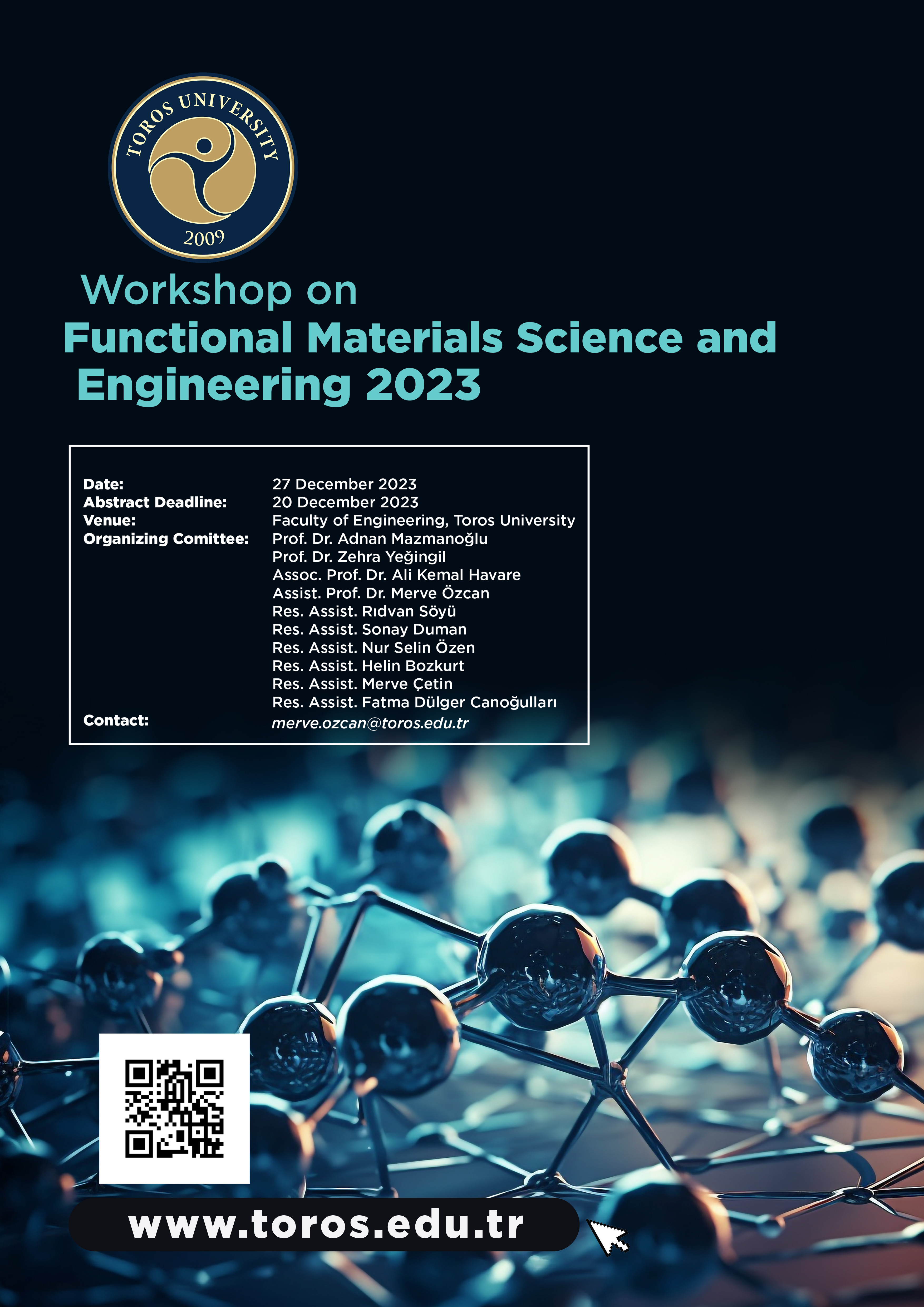 Toros Üniversitesi Mühendislik Fakültesi’nce 27 Aralık 2023 tarihinde yüz yüze  “Workshop on Functional Materials Science and Engineering 2023” etkinliği düzenlenecektir.