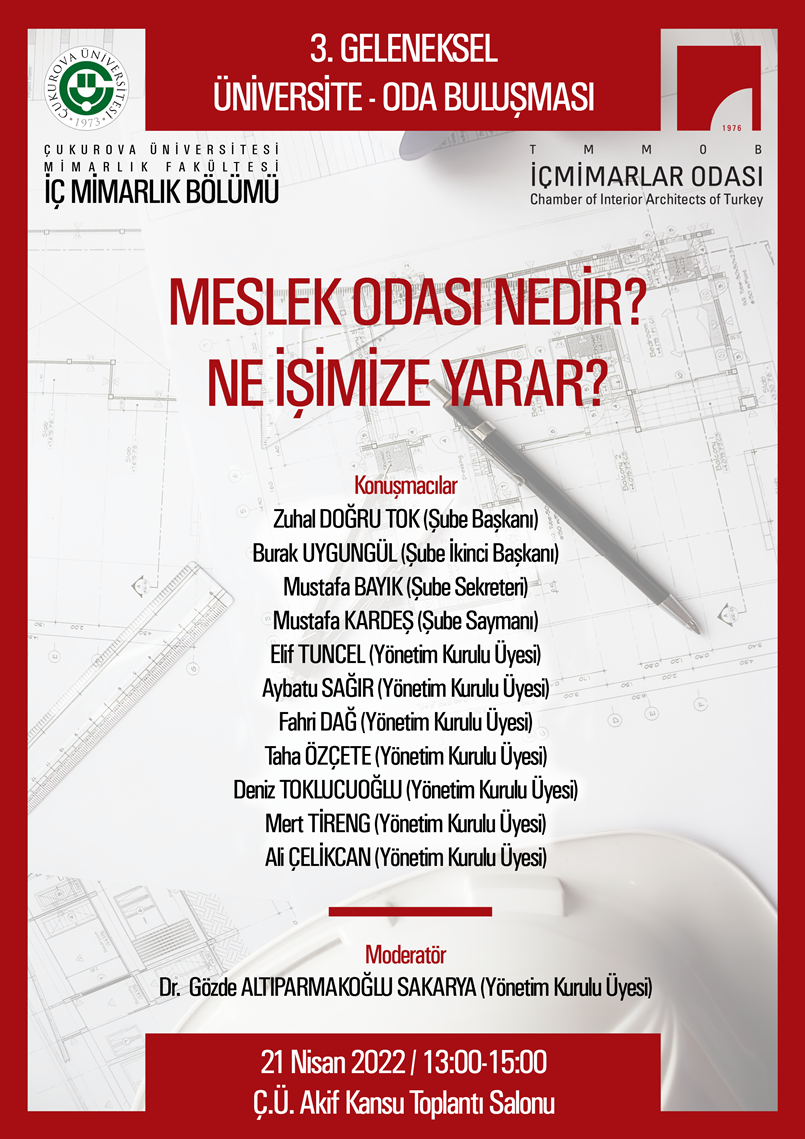 Çukurova Üniversitesi Mimarlık Fakültesi İç Mimarlık Bölümü " 3. Geleneksel Üniversite- Oda Buluşması"