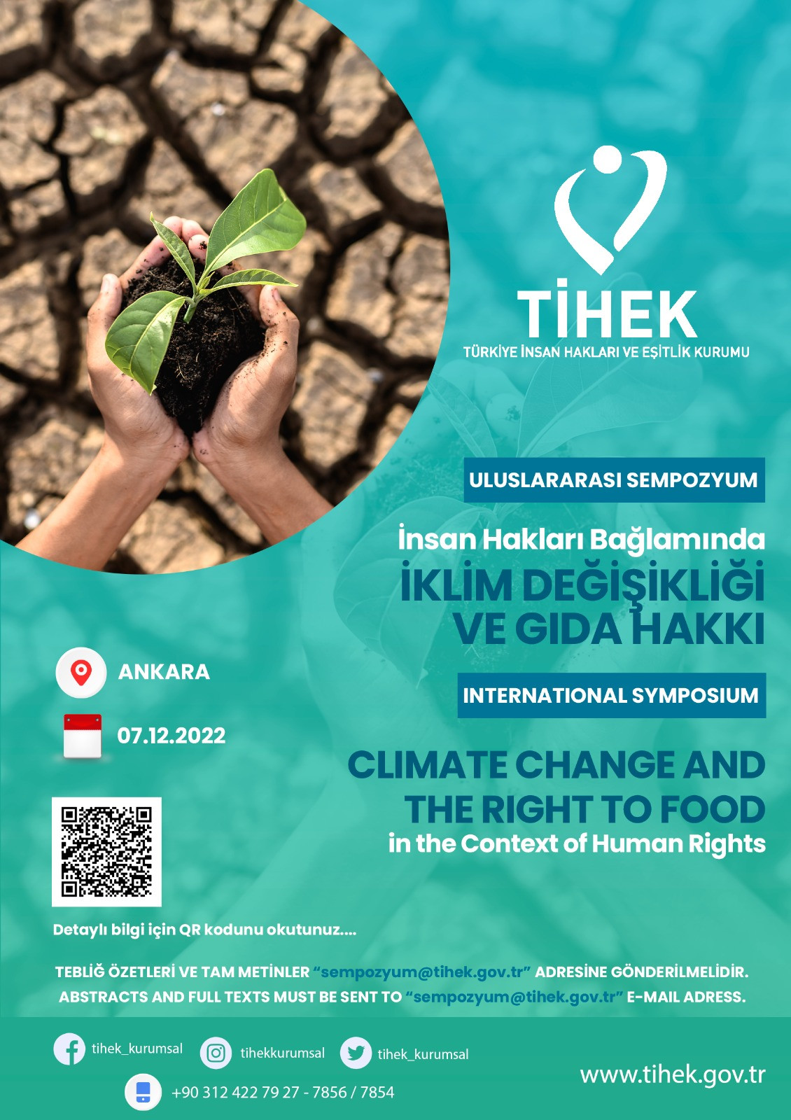 Türkiye İnsan Hakları Kurumu tarafından 10 Aralık İnsan Hakları Günü münasebetiyle 07 Aralık 2022 tarihinde “İnsan Hakları Bağlamında İklim Değişikliği ve Gıda Hakkı Uluslararası Sempozyumu” düzenlenecektir.